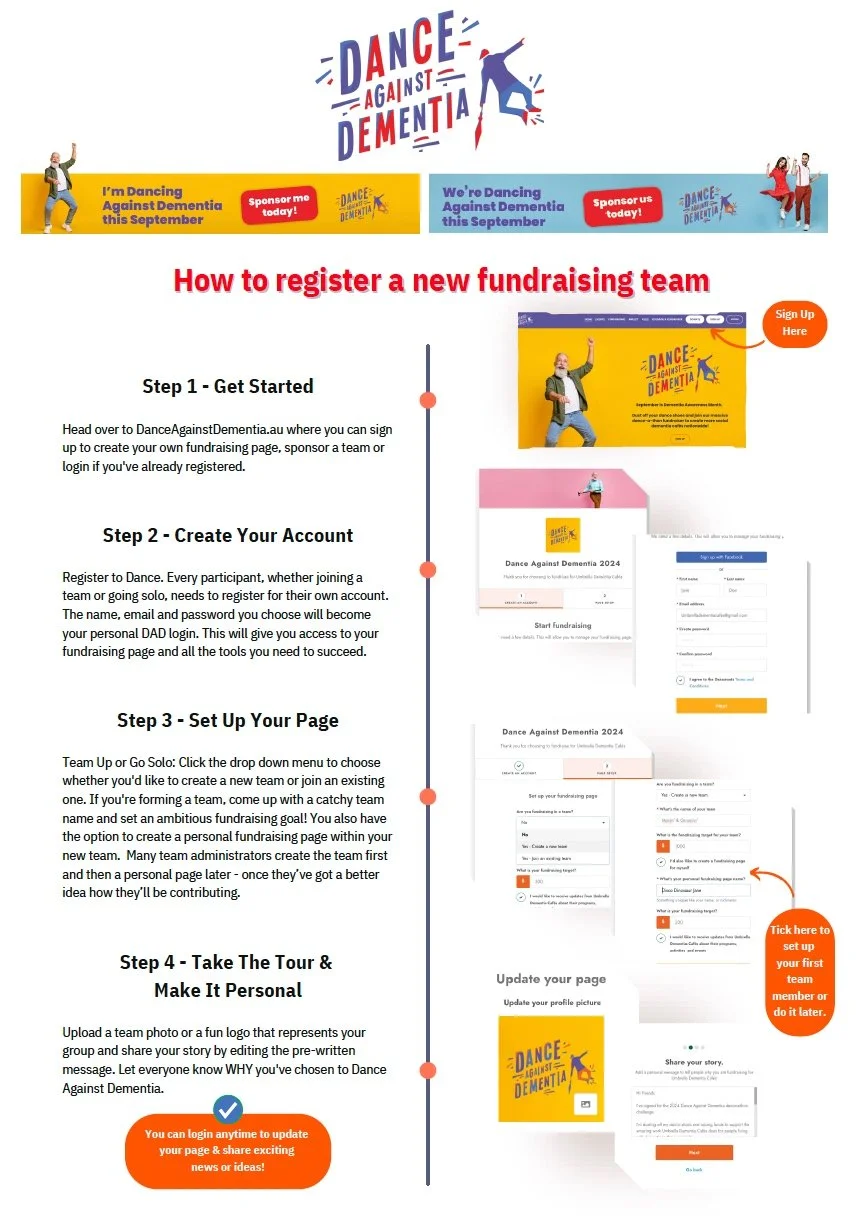 Download instructions how to register for Dance Against Dementia and how to join a team